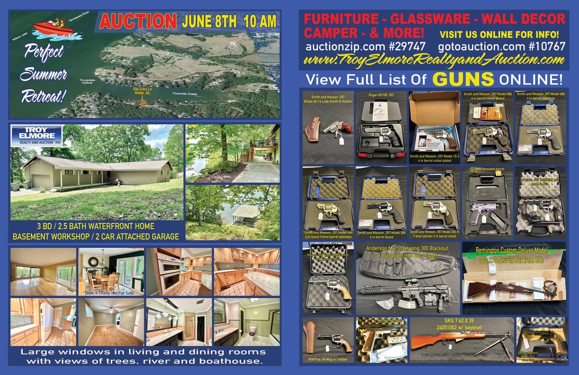 Waterfront home with 3 bedrooms, 2.5 baths, 2-car garage, workshop, and boathouse on 0.9 acres. Large windows in the living and dining rooms offer views of the trees, river, and boathouse. Offered in tracts and as a whole, this property was the perfect summer retreat for its next owner.